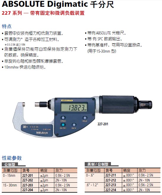 三丰227系列ABSOLUTE Digimatic 千分尺