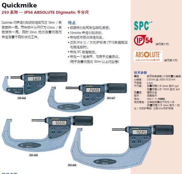 【三丰】293 系列 — ABSOLUTE Digimatic 千分尺