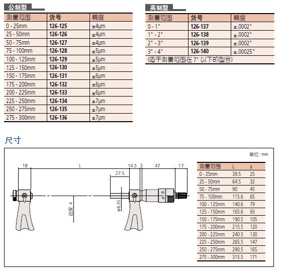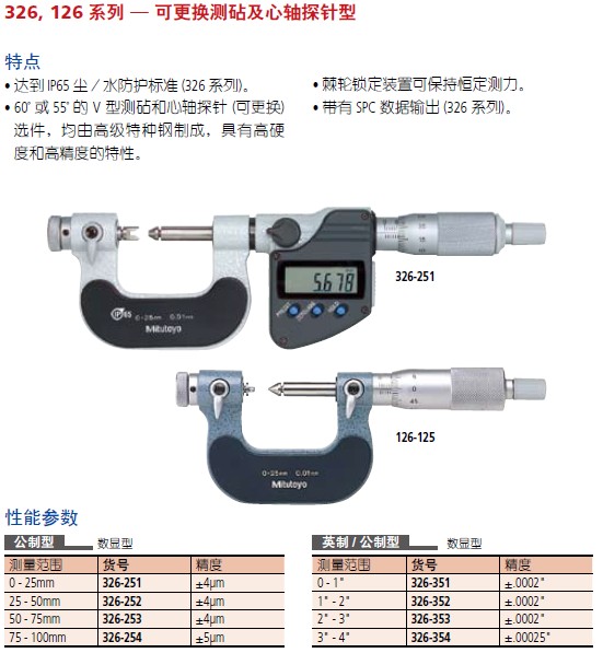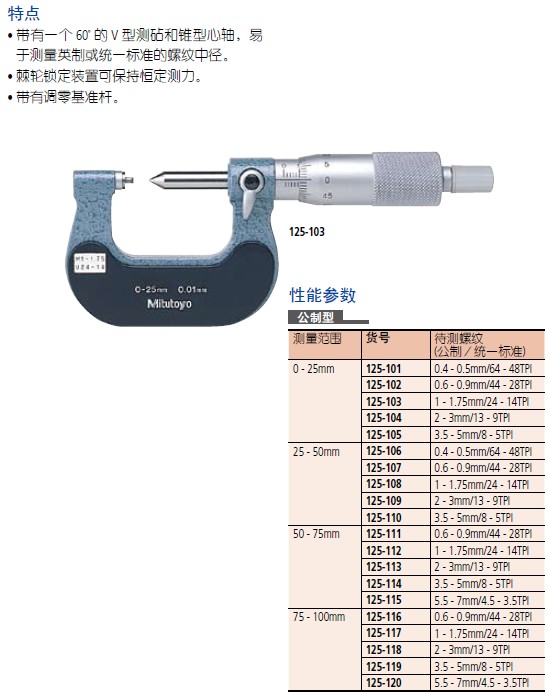 【三丰】125 ,326, 126系列螺纹千分尺