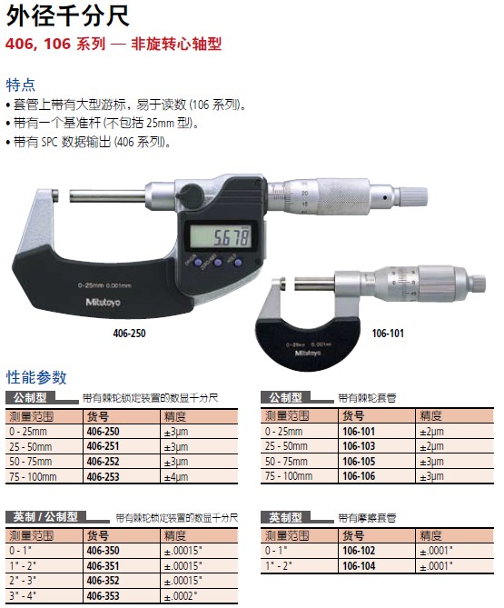 【三丰】406, 106 系列外径千分尺
