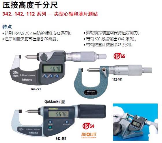 【三丰】342, 142, 112 系列压接高度千分尺