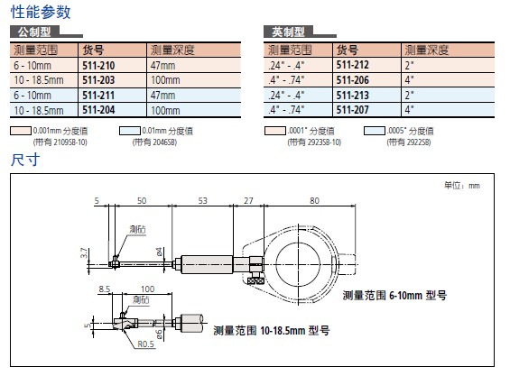 【三丰】内径表 (用于小孔)
