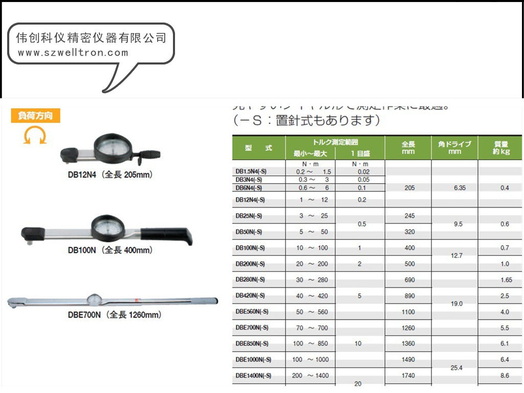 扭矩扳手也是测量器具。 请注意以下事项。 使用上注意 1.不要让垃圾水等进到扳手里。 2. 套管一旦变形、扭矩精度变差。 3.不要让扳手从高处摔落、受到撞击。 4.不要加载过扭矩。(作业时注意)