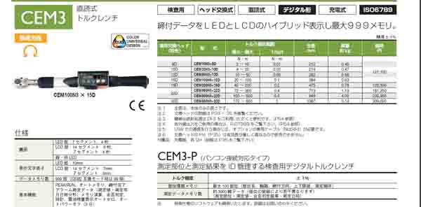CEM100N3×15D数显扭力扳手 量程:20-100N.M(200-1000kgf.cm) 最小读数:0.1N.M 1kgf.cm