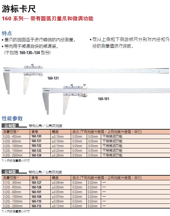 【三丰】游标卡尺 (带有圆弧刃量爪)