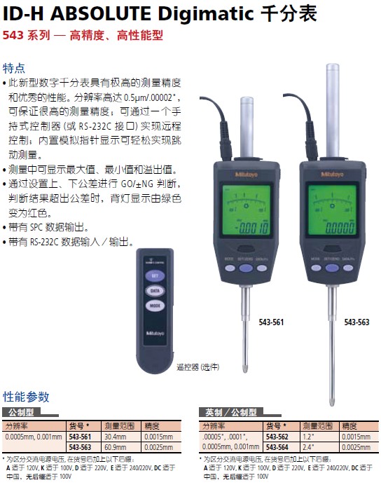 【三丰】ID-H ABSOLUTE Digimatic 千分表