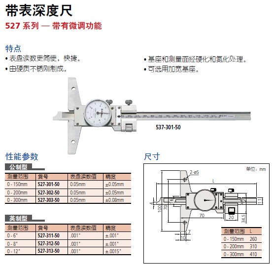 【三丰】带表深度尺