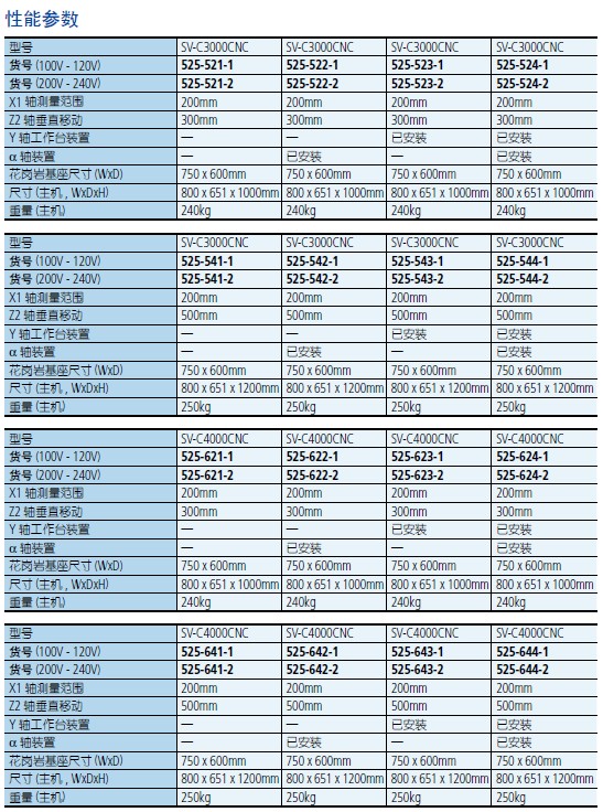 特点 • 高精度CNC 表面粗糙度/形状测量仪,一机二用:可进行表面粗糙度和形状/轮廓测量。 • 每轴驱动速度最高可达200mm/秒,实现高速定位,满足多轮廓/多工件的测量任务。 • 带α 轴的机型可通过电动倾斜检测器,对水平和倾斜表面进行连续测量。 • 带Y 轴工作台的机型可通过Y 轴轴向定位,扩大测量任务的范围,如多工件任务等。 • SV-C4000CNC 系列的轮廓驱动器配备激光全息光栅尺,可提高宽/窄范围测量精度和 Z1 轴分辨率。