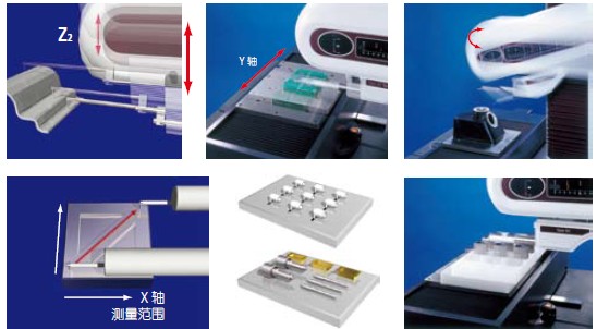 • 通过同时控制X 轴和Y 轴的方向,可实现倾斜平面的测量。 • 通过简单的一次性操作,可更换形状/轮廓测量装置与表面粗糙度测量装置,并且,不必对连接电缆重新布线。 • 由于Z1 轴检测器内置了防撞器,当检测器主体即将碰撞工件或夹具时,检测器将自动停机。 • 配有易于操作的遥控箱:通过两个操纵杆,选定需要操作的轴,即可实现任何移动。键上端的轴向图标易于辨认,轻松操作。 • 通过USB 与数据处理/分析器通信。